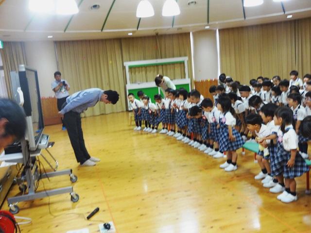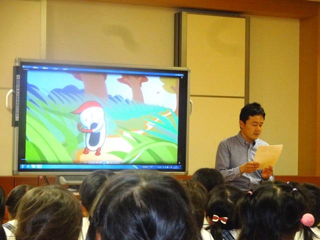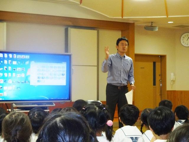 途中、クイズも入れながら楽しく進めて下さいました。クイズの正解は三択から選ぶものでした。「分かった人?」「はい、はい」たくさんの手が挙がります。指名された子の話にしっかりと耳を傾け、違っていてもなぜそう思ったかを丁寧に聞いて下さいました。そして、答えた後には「そう。よく考えたね」と必ず褒めて下さり、子どもたちもにっこり笑顔を見せていました。