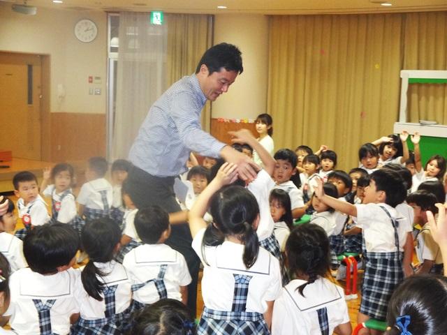 7月11日、絵本の読み聞かせ教室を催しました。講師は、本園の保護者であり、読売テレビのアナウンサーである本野大輔氏です。