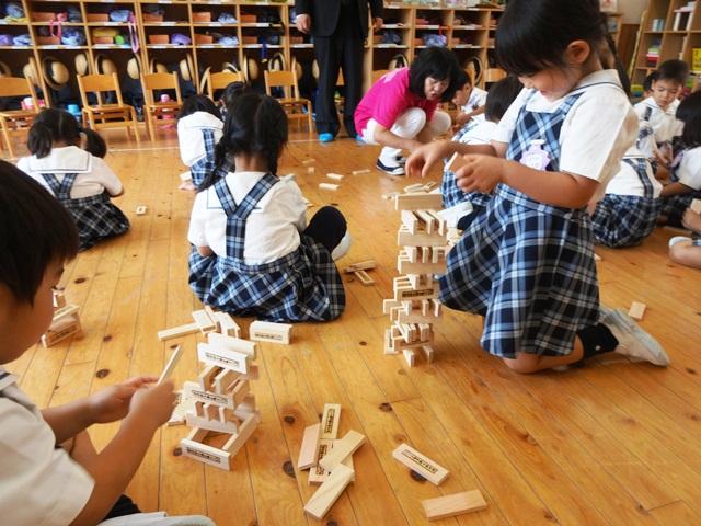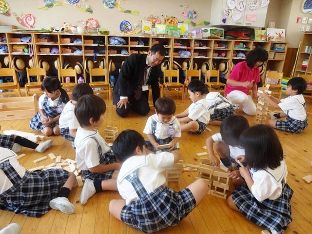 「電車」「家」「タワー」など、僅かな時間でしたが子どもたちは「もっと遊びたい」と思うほど、集中して遊んでいました。匠の会の方も一緒に遊んで下さり、子どもの言葉や仕草に時折、目を細めて下さっていました。