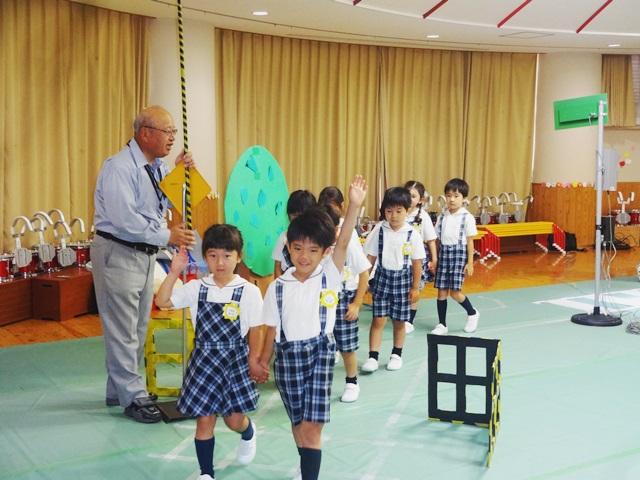 教室では、まず婦警さんが赤・青・黄の果物や野菜を描いた不思議なカードで子どもたちの興味を惹き付けます。「いったいネズミはどこへ隠れたのか…不思議?」その後、交通ルールを教えて下さいました。