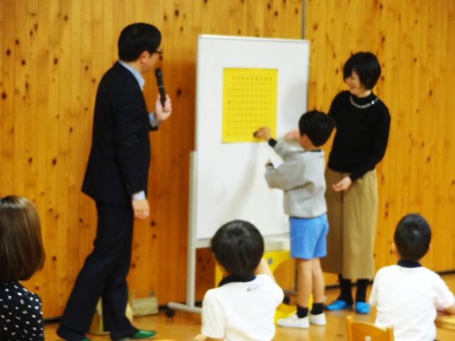 年中組は、1つ大きいだけあって理解も早いです。おうちの方と真剣な眼差しで対戦していました。分からない時は、優しく教えて下さる先生の説明に、親も子も真剣に耳を傾けていました。