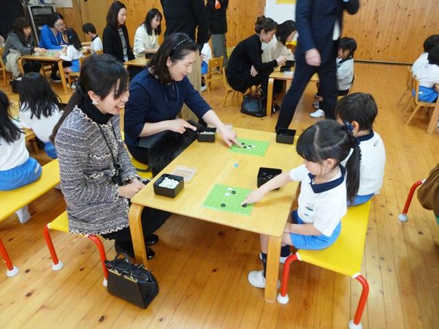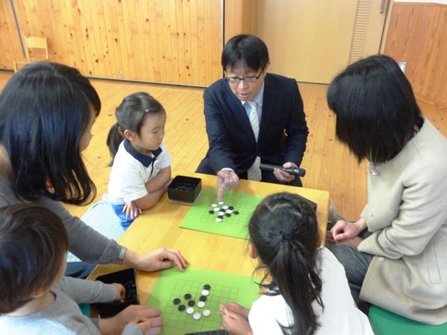 年長児から始めました。はじめに、藤原先生から”囲碁”についての説明がありました。