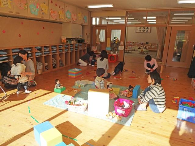 汽車が好きな子、ままごとでお母さんにごちそうを食べてもらって喜ぶ子、ブロックに夢中の子等、おうちの方が側にいてくれるので安心して遊ぶことができます。