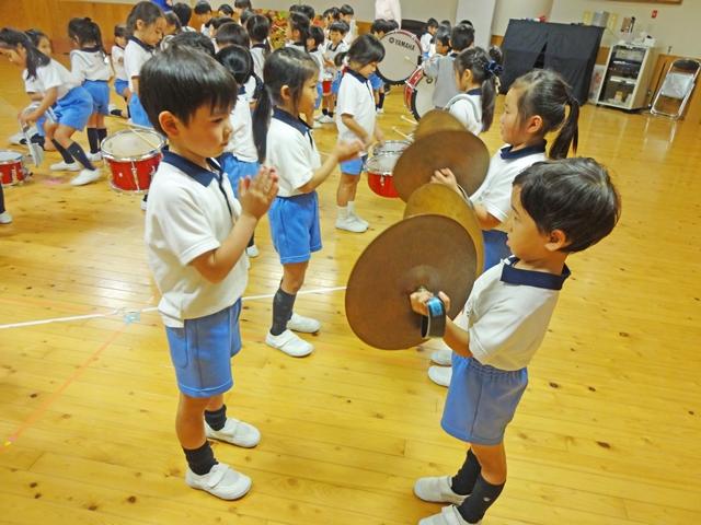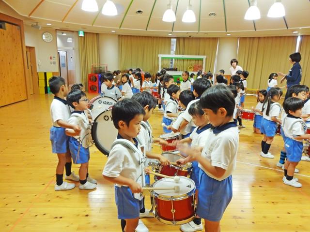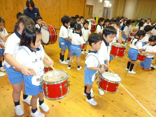 年中児にとっては、年少の頃からずっと憧れていたマーチングです。やっと手にできたマーチング楽器に、みんな笑顔いっぱい、意欲満々♪です。