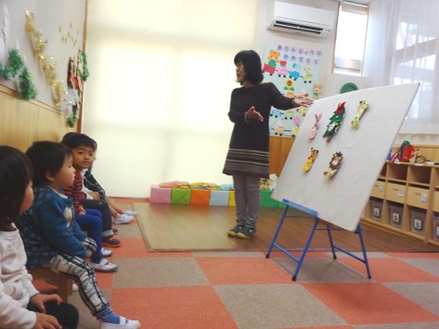 小さな2歳児さんでも、こんなに可愛いツリーがつくれるのだと感動すると共に、材料を準備する先生のアイディアの豊かさに感心しました。