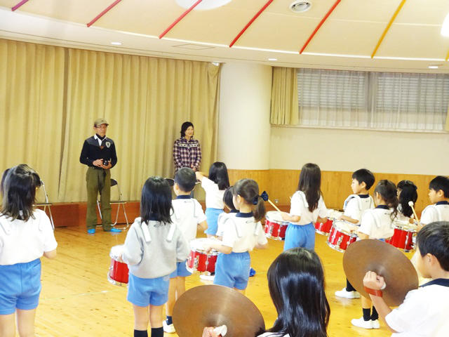 ずっとお世話になった久保先生とも、今日でお別れです。みんなは、感謝の気持ちを込めて、マーチング演奏を聴いてもらいました。