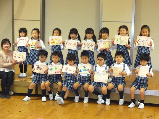 宇宙に届ける絵を持った子どもたちの笑顔の写真撮影をしました。