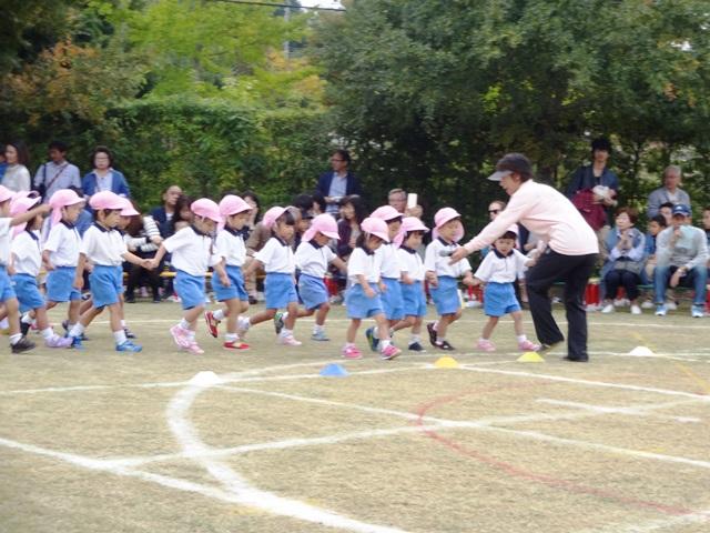 スタートラインに立つと先生が名前を呼んでくれます。「返事できるかな?」って心配するのは大人だけかな?・・・ どの子もしっかりと返事ができました。感心!