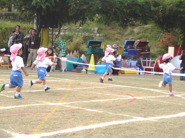 笛の合図でゴールを目指します。フライングもなんのその、走れ~走れ~! みんなゴールを目指して走りきりました。
