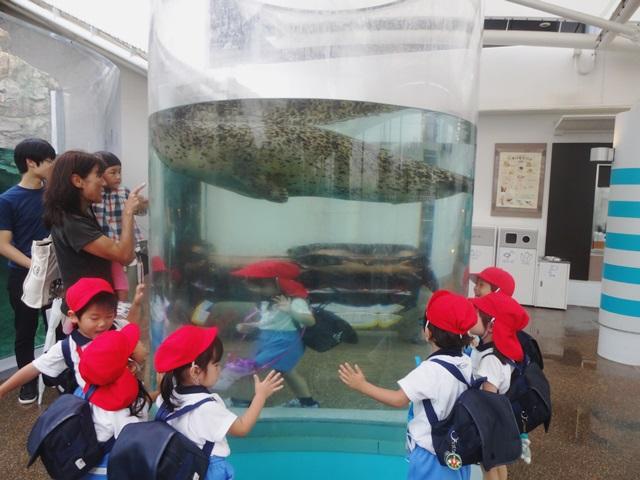 アザラシは水槽の上まで上がったり、グルグルと回転したりして子どもの心を弾ませてくれます。間近で見られるのでどの子も大興奮でした。