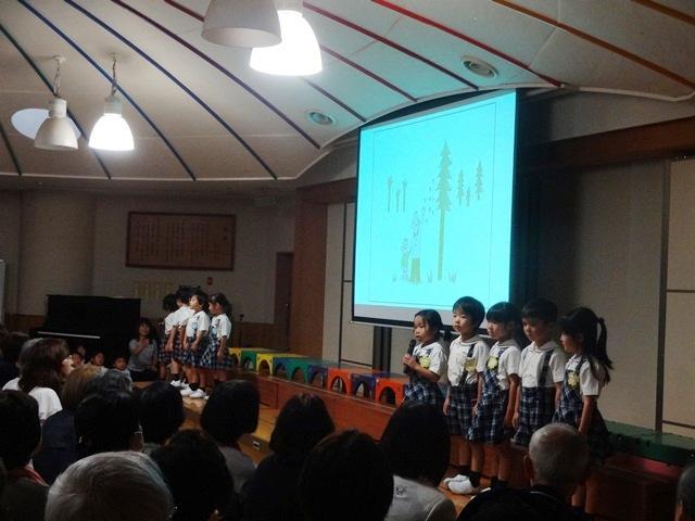 幼稚園で一番大きい年長組は、「おじいちゃん、おばあちゃんに聴いて頂きたい」と練習してきた絵本の朗読をしました。題名は「だいじょうぶ だいじょうぶ」