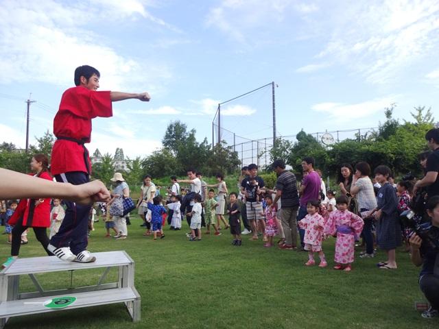 フィナーレは、緑の芝が鮮やかな園庭でみんなで”盆踊り”