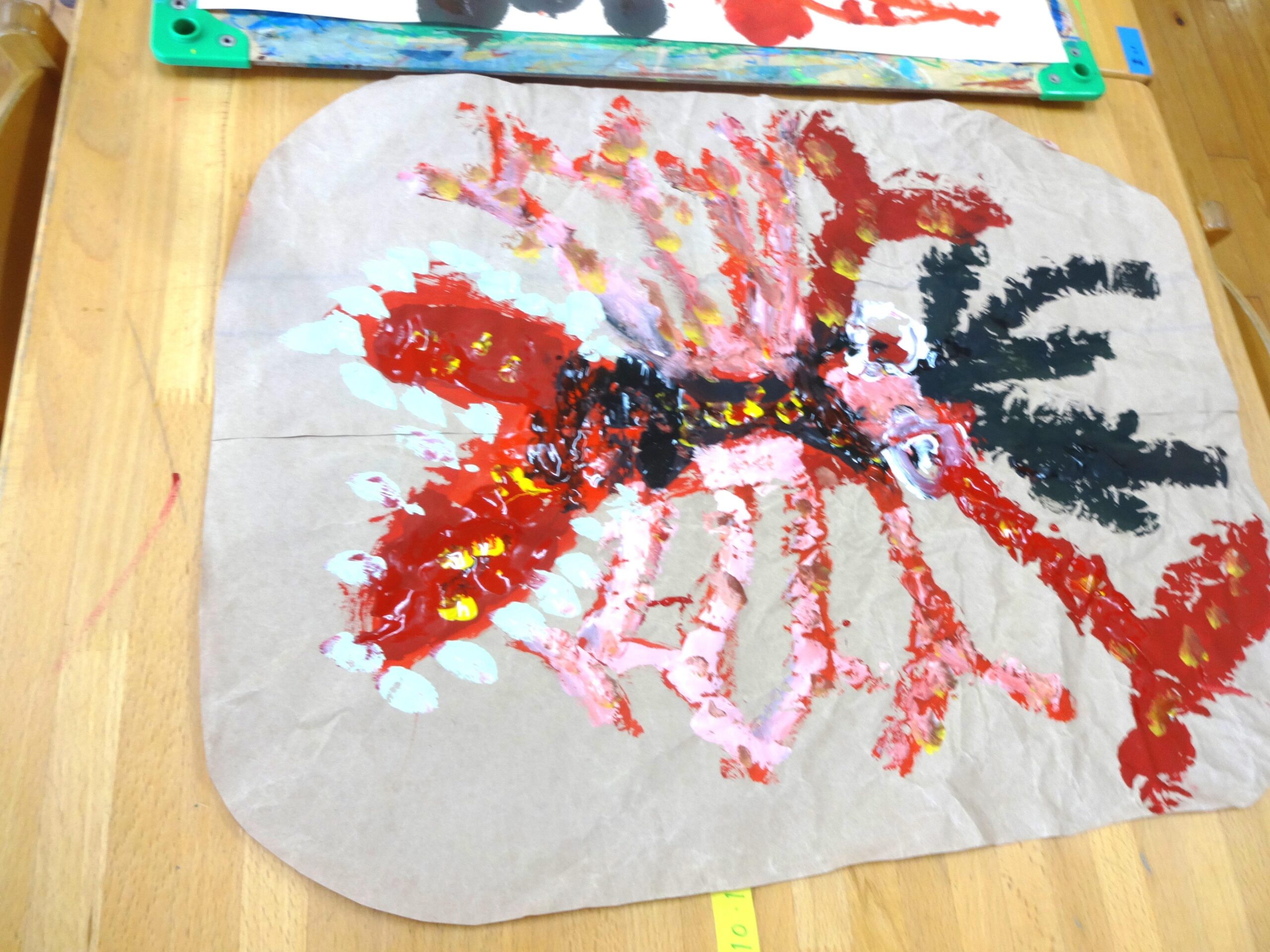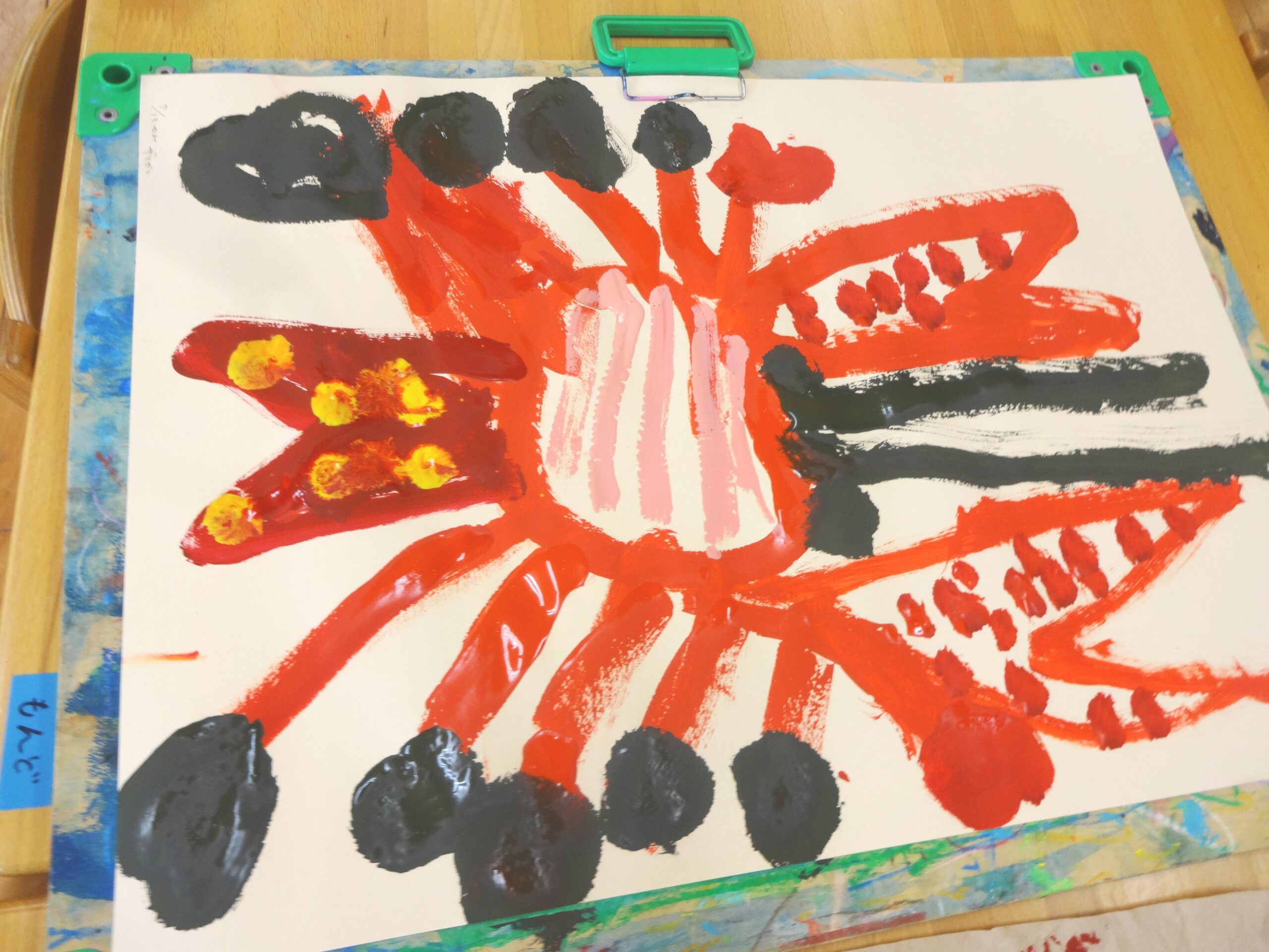 少ししか紹介できないのが残念ですが、一人一人が自分の捉えたザリガニを大胆にのびのびと表現しています。何といっても楽しみながら描いている姿が素敵でした。