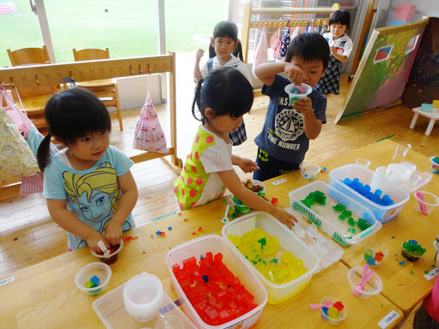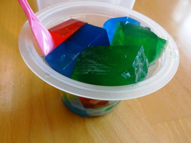 いろんな色を混ぜて”カラフルゼリーでーす”