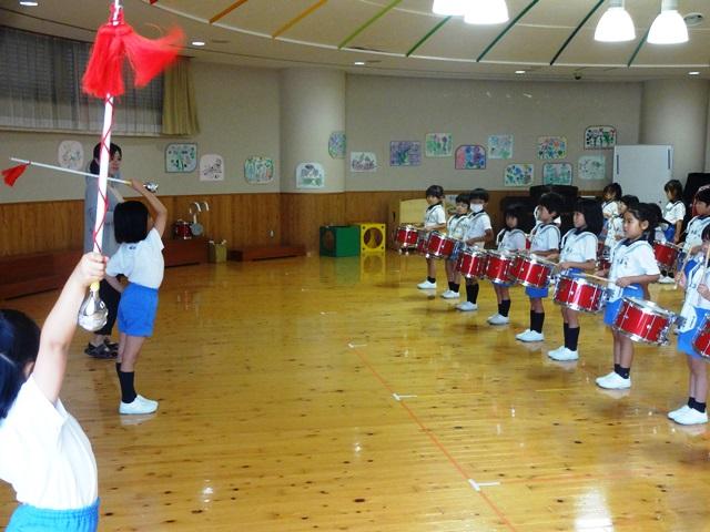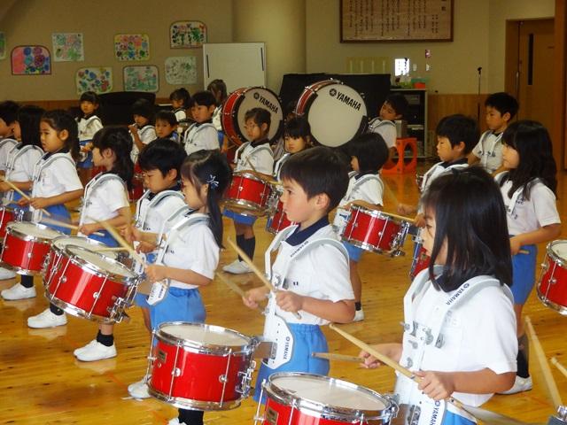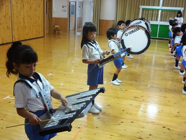 年中組の頃から憧れていたマーチングの練習が始まりました。自分でやりたい楽器を選び、希望者が多いところはジャンケンで決めました。初めて楽器を手にした時の嬉しそうな笑顔♪心も弾んでいました。