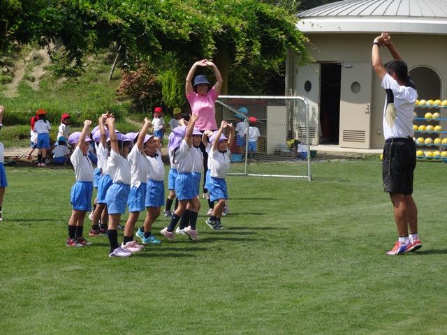 まずは年中組からです。準備体操のかけ声も大きくはりきっています。