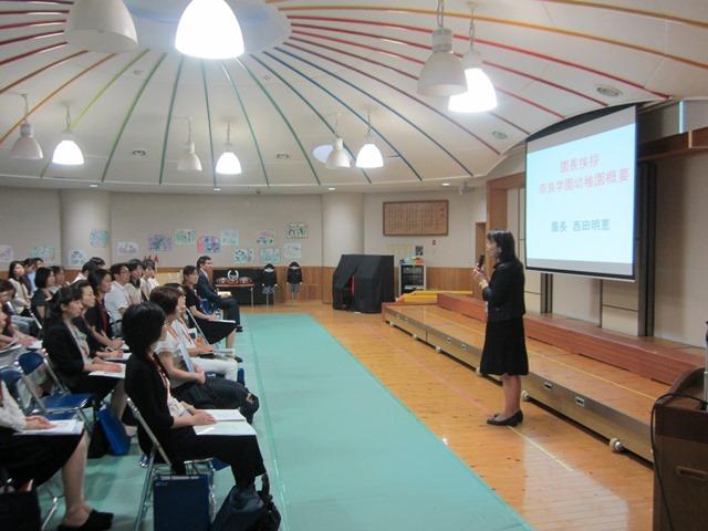 その後、説明会に入り、私の方からは本園の教育の概要について、主任の方からは、具体的な教育内容について説明させていただきました。参加して下さった皆様は、一生懸命に耳を傾けて下さいました。提出していただいたアンケートには「子供達の発表にとても感動しました。思わず一緒に口ずさんだり…息子の将来を感じることができました」や「様々な体験を通して、子供達の成長の礎を築いて頂ける環境であると言うことが再確認できました」などの温かいご意見を頂戴しました。