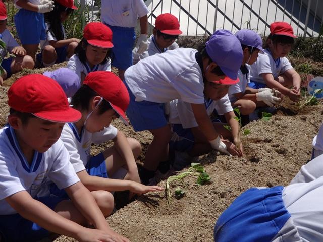 お兄さん・お姉さんの声はストンと心に入るようで教えてもらった通りに苗を植えていました。