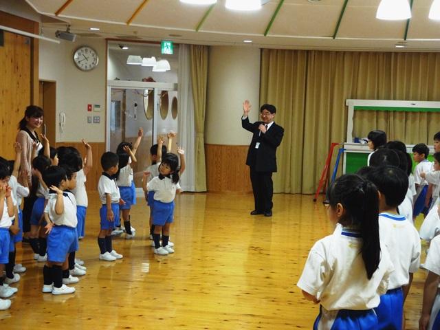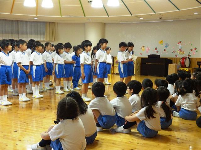 幼稚園の遊戯室に集まり、『対面式』