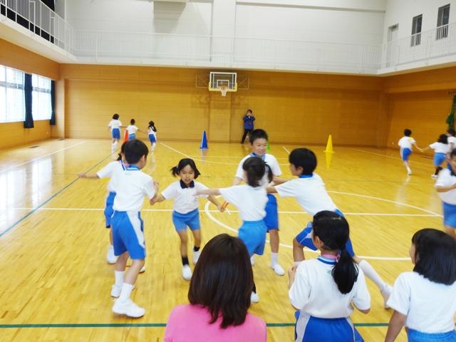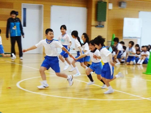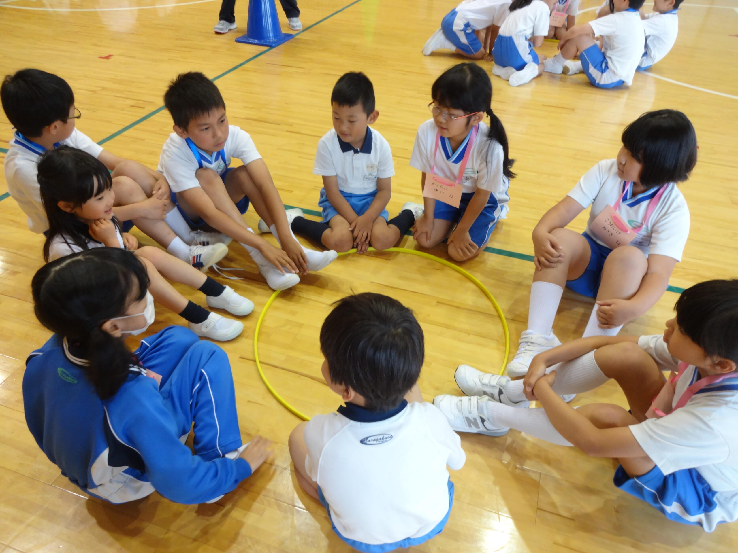 最後にみんなでフラフープリレーを楽しみました。リレーの後で、P3生が手作りのメダルをプレゼントしてくれました。首にかけてもらうととっても嬉しそうな表情で「ありがとう」と御礼の言葉を伝えていました。