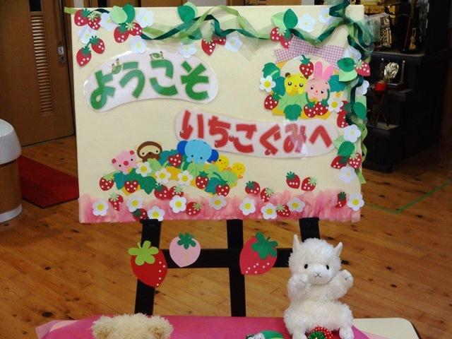 年長児が心を込めて作ってくれたいちごのペンダントを一人一人にプレゼントするととっても嬉しそうな笑顔を見せてくれました。