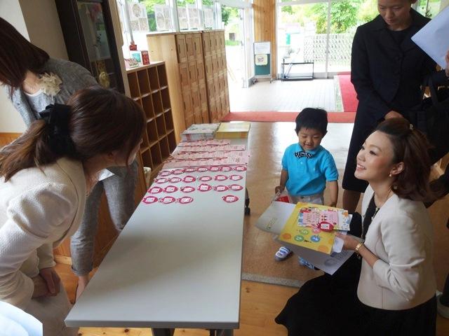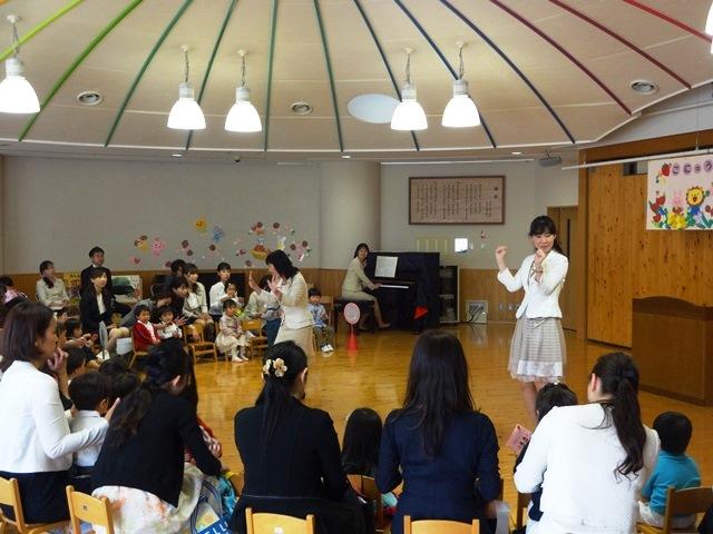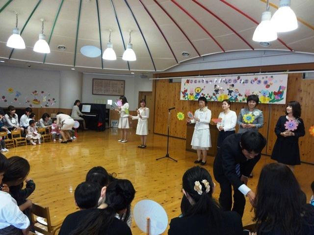 みんなで『むすんでひらいて』の手遊びをしたり、『お花が笑った』や『先生とお友達』の歌を歌ったりして、和やかなうちに式は終了しました。