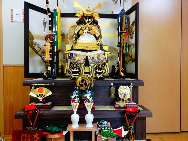 もうすぐ”こどもの日”五月人形を飾り、鯉のぼりも揚げています。