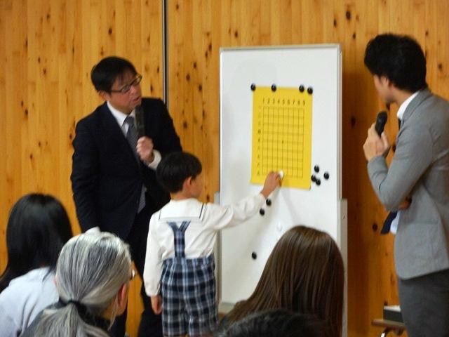 「オー凄いね。拍手~」と褒めていただくと嬉しくて、「ハイハイハイ」と手を挙げ前に出てやりたい子がいっぱい。囲むというルールをしっかりと覚え先生から出された問題をクリアーしていました。