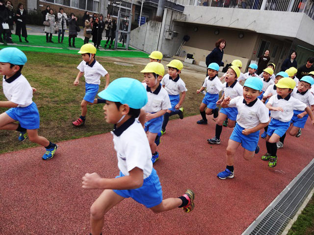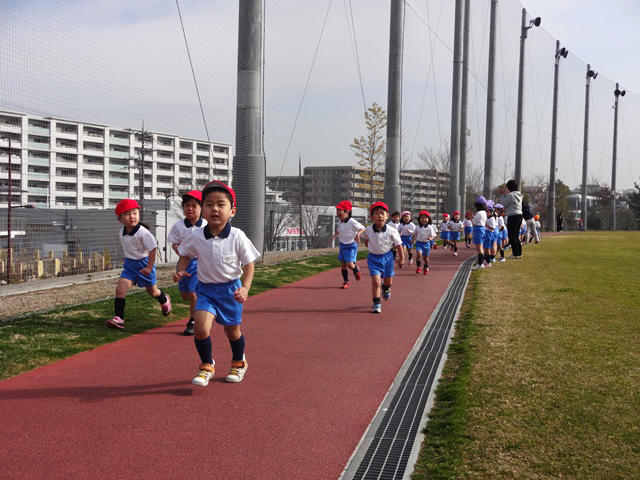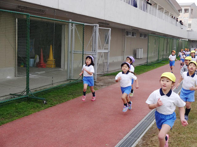 これまで幼稚園の園庭で、かけっこをしたり、10分体育で体力を蓄えてきた子どもたち。今日はいよいよ本番です♪