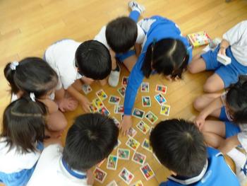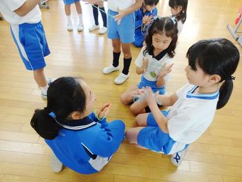 園児は同じグループのお兄さん・お姉さんに遊び方を教えてもらい楽しそうに遊びに取り組んでいました。