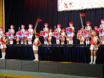 年長児が1学期から取り組んできたマーチング活動も最後のステージ発表となりました。大丈夫!と思いながらも少しドキドキしながら幕が開くのを待っていた私ですが、子どもたちは、何のその、キリッとした表情で堂々とスタンバイしています。曲が流れると心の中でリズムをとりながら、友達と心を合わせ、一生懸命にそして真剣に演奏していました。そんな子どもたちがとても素敵で目映くさえみえました。