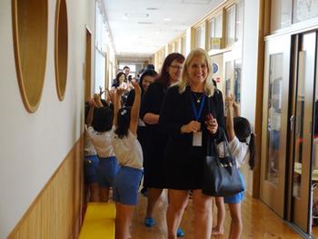 園児は”Welcome to Nara!”のかけ声の後、英語の時間に歌っている”Hallo Song”で
