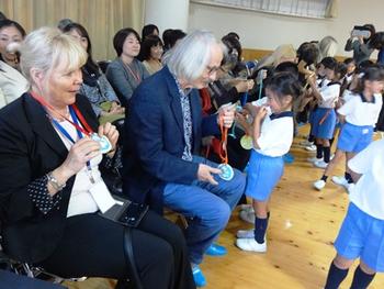 “Thank you”と頭を撫でてもらったのが嬉しかったのか全員に手渡していました。