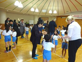 事前に外国からのお客様にはどんな歌がいいかなと考え”ならの大仏様”の歌遊びをしました。そして”一緒に遊びましょう”と輪になってダンス♪ 手をつないで歩いたり、トンパチと手を合わせたりしながらにこにこ笑顔で楽しみました。言葉は違っても、繋いだその手の温もりは国際交流の架け橋になったのではないでしょうか。