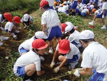 10月5日にP2(小学2年生)とPP2(幼稚園年中児)が”おいもパーティー”交流会を行いました。