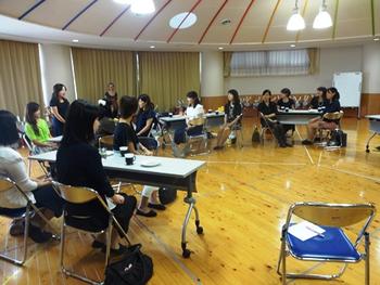 給食の後は、私と保護者の皆さんとの交流会。園活動の様子を映像を通してご覧頂いたあと、お子さまの”名前”について話していただきました。「優しい子に」「健康で元気に」「グローバルに生きて欲しい」「人との出会いを大切に」・・等、皆様の話から我が子への大きな愛を感じました。
