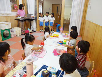 夏を超え、”夢の種”からたくさんの芽が出てきたように感じます。自分で好きな遊びを見付けられるようになりました。友達と一緒に遊べるようにもなってきました。「一緒にしよう」「これどうぞ」と会話もできるようになってきました。みんなで一緒にリズムに合わせて”仲良し遊び”もできるようになってきました。