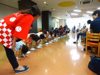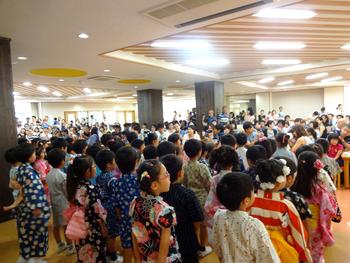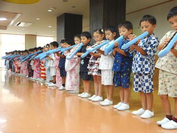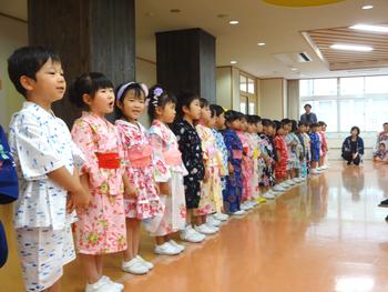 夕涼み会の前にたくさんのご家族の前で、浴衣姿の終業式♪ とっても可愛いです☆