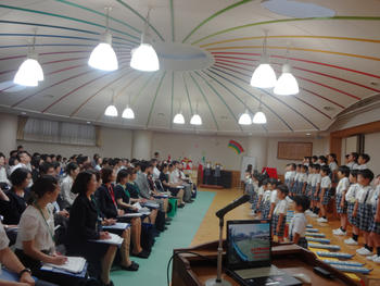 説明会では、15年間一貫教育の中で、未来につなぐ学びの一歩を育てる幼稚園教育の大切さを伝えると共に、本園の特徴的な活動や教育内容の具体等を映像を通して説明しました。参加者からのアンケートでは「子ども達の発表歌声に感動しました」大変魅力的な幼稚園でした「心を育てる教育にとても心ひかれました」等々が記され、本園のことをご理解頂いたこと大変嬉しく思いました。