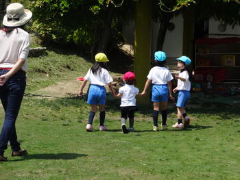 自分より小さい子に優しく声をかけ、手をつなぎ、その子の気持ちに寄り添う優しい年長児の姿に学びます。