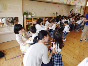 子どもたちは、お母様が大好き♪です。入園当初、ちょっぴり涙を流している子の口から出る言葉は必ず「ママー」「おかあちゃーん」。でも、お母様の姿が見えるとすぐににこにこ笑顔になります。やっぱり”母は偉大なり”ですね!