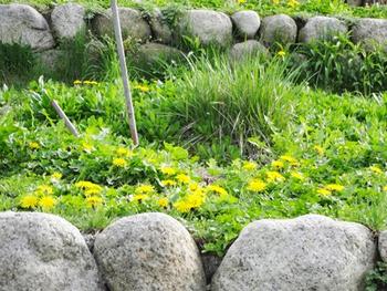 春風が吹き、チューリップや春の花が楽しそうに揺れています。棚田では、柔らかな光を受けて、可愛いたんぽぽが子どもたちを迎えてくれています。
