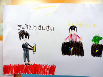 卒園する子どもたちからメッセージが届きました。卒園式の練習をする絵、自分の席からしっかりと見てくれているのだなと思うと心が引き締まります。
