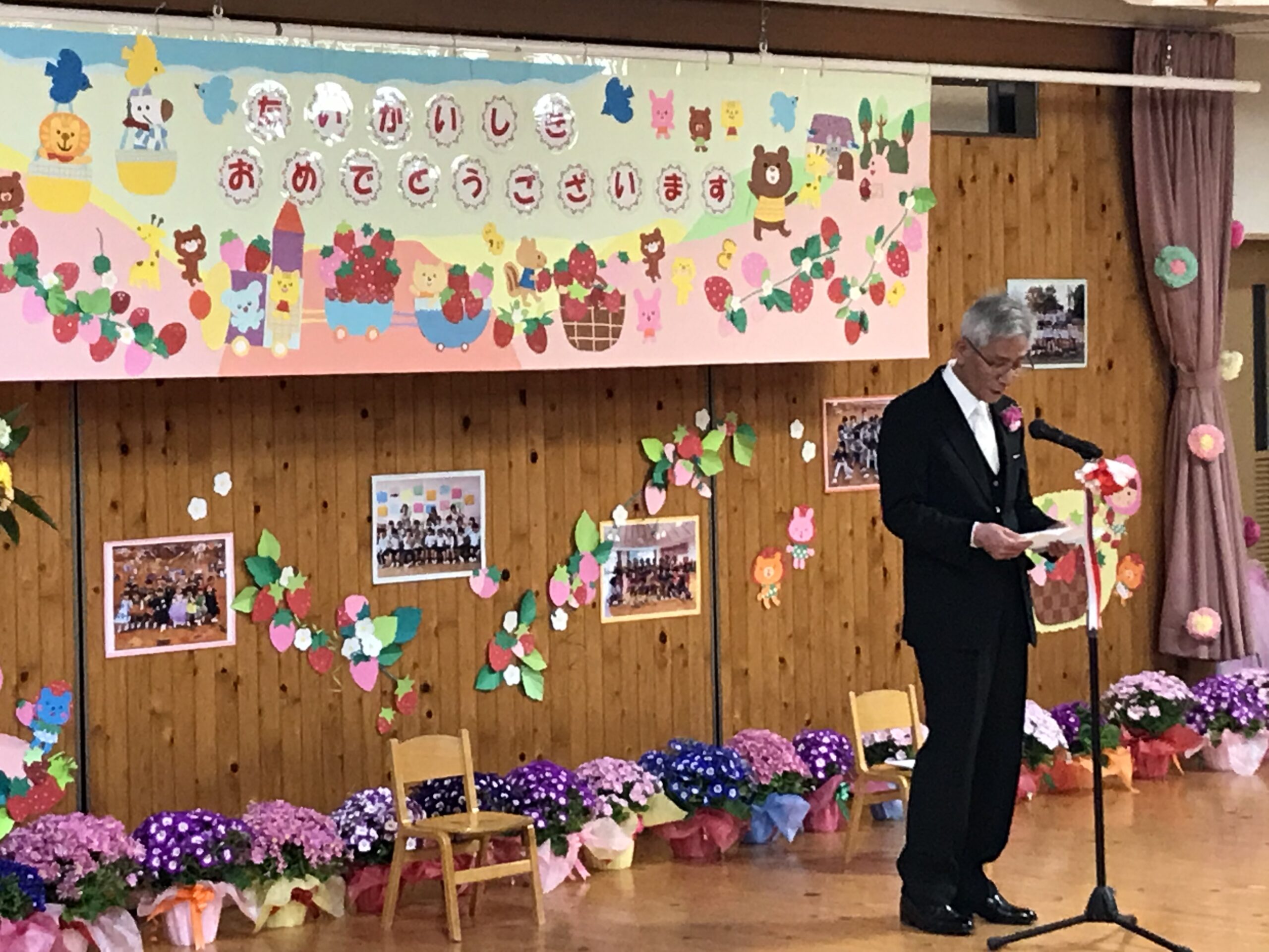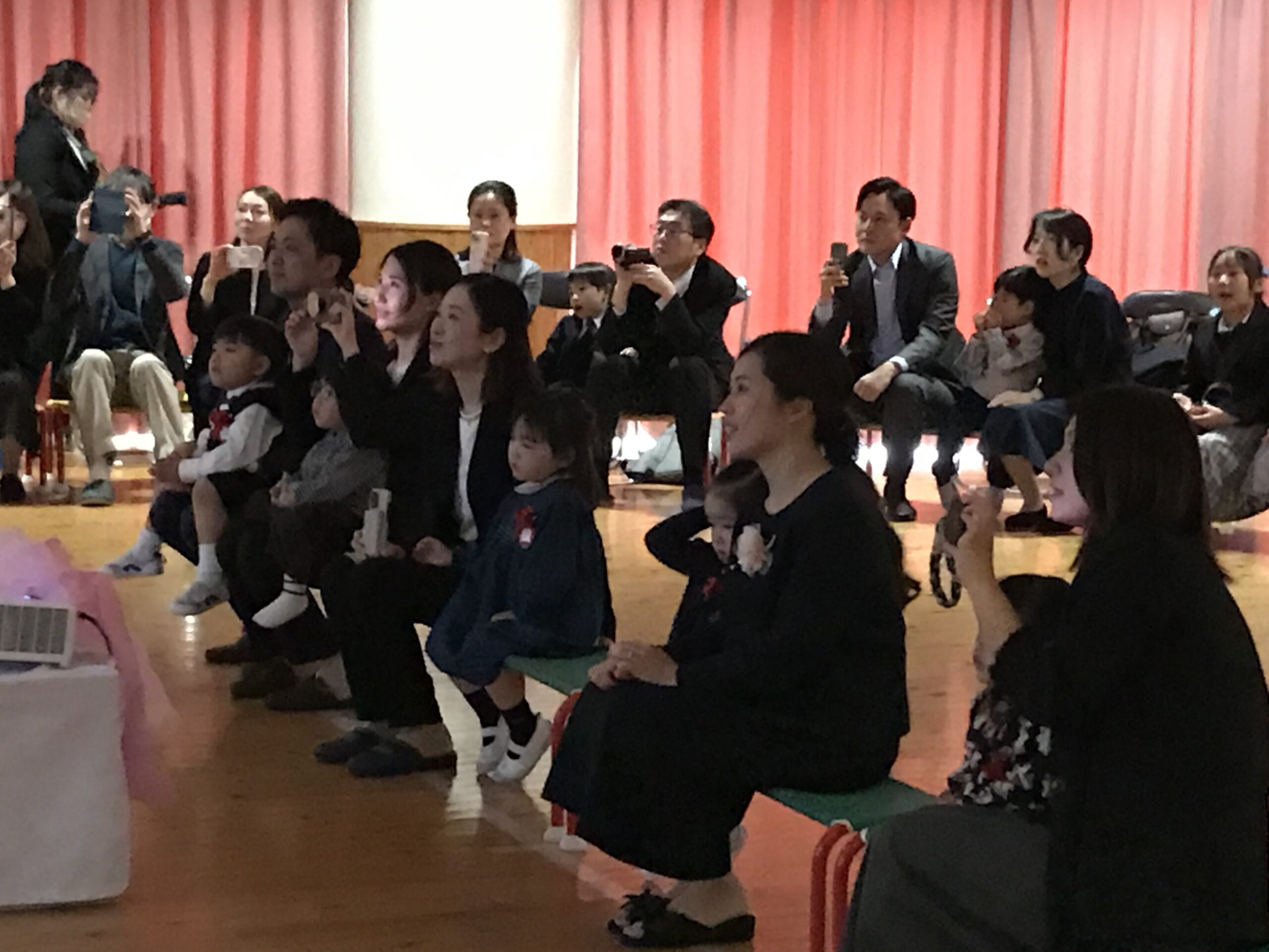 一人ずつ修了書を手渡す場面では、お返事をしてしっかりと受け取ってくれました。園長式辞も静かに聞いてくれました。成長が感じられるその一つ一つの姿や、担任の先生が用意してくれた1年間の歩みを紹介するスライドを見て、胸が熱くなるのを感じました。