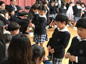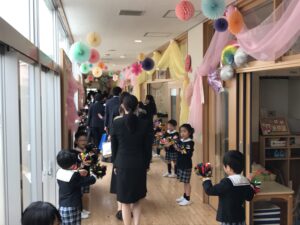 式が終わると、全園児が廊下で「おめでとう!」とお見送りをしてくれました。