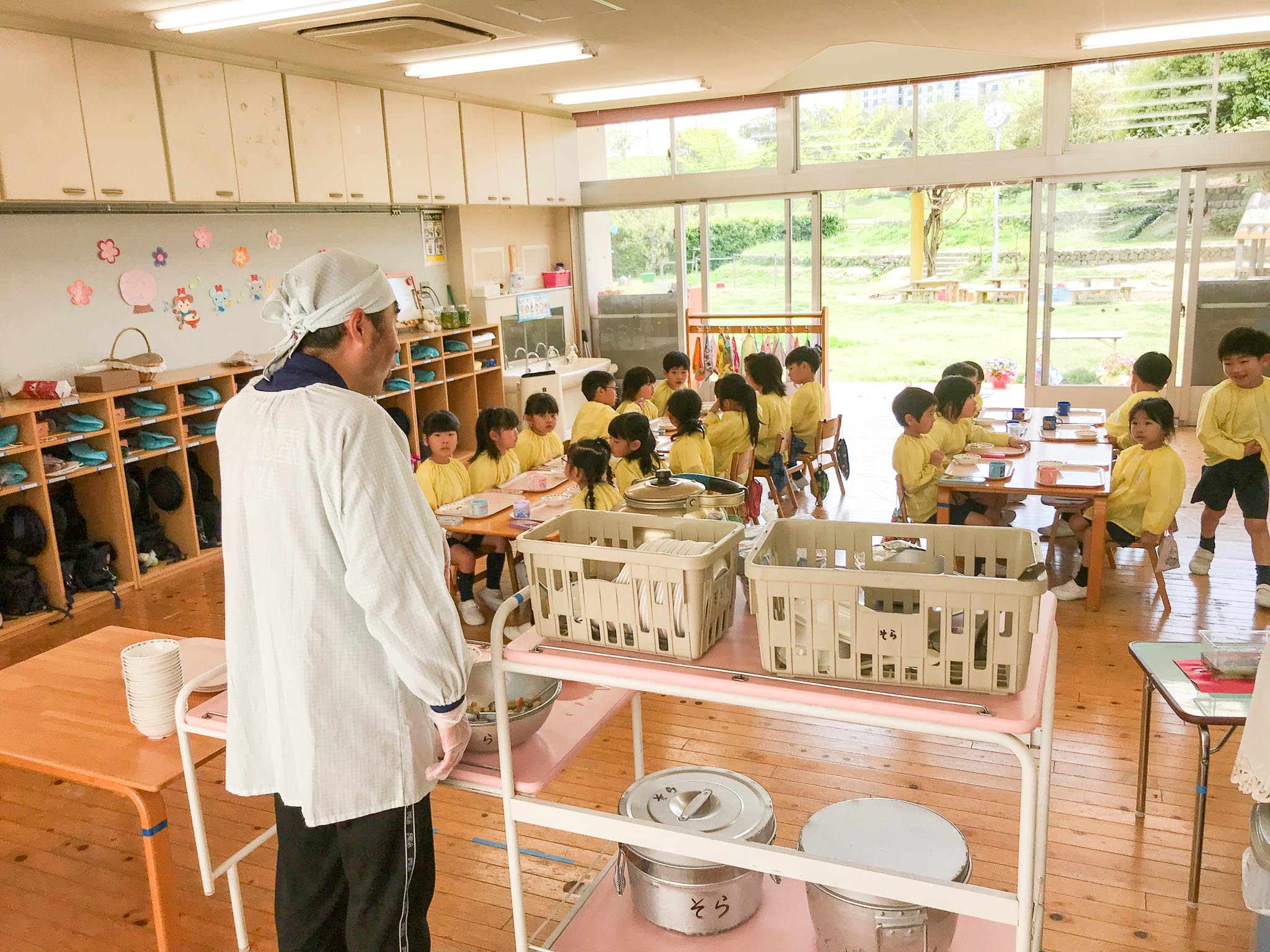 4月14日(火)から、年少組以上の学年の給食が始まりました。