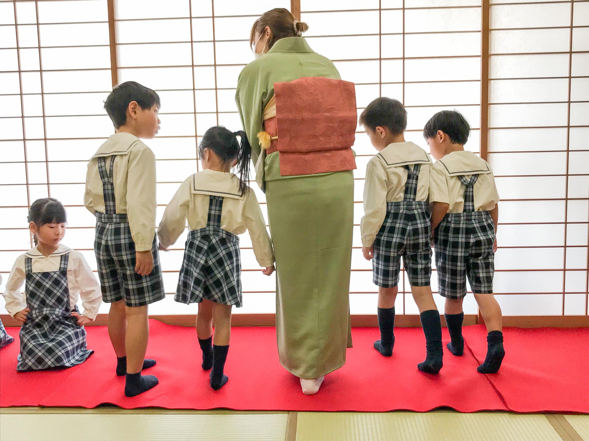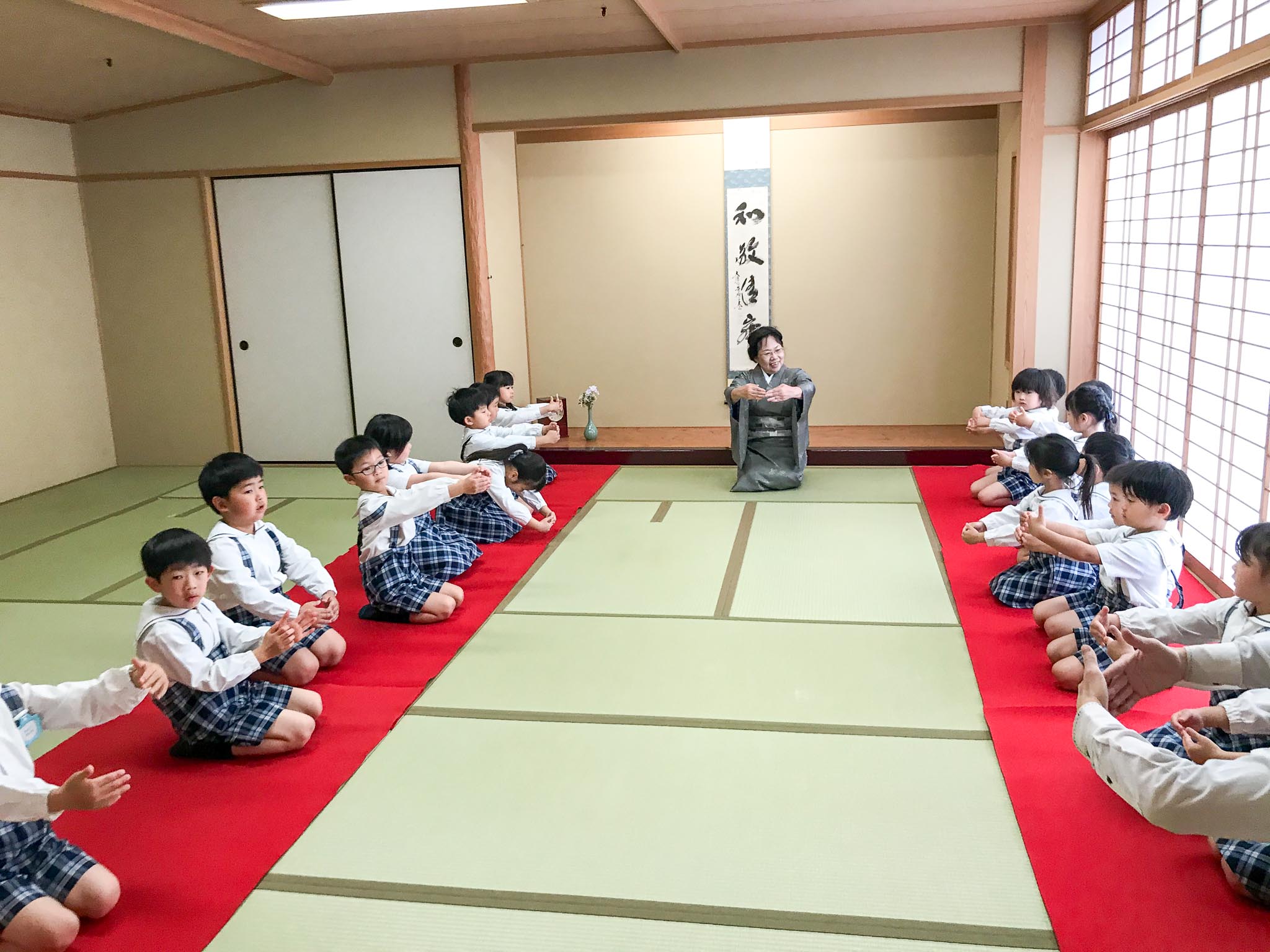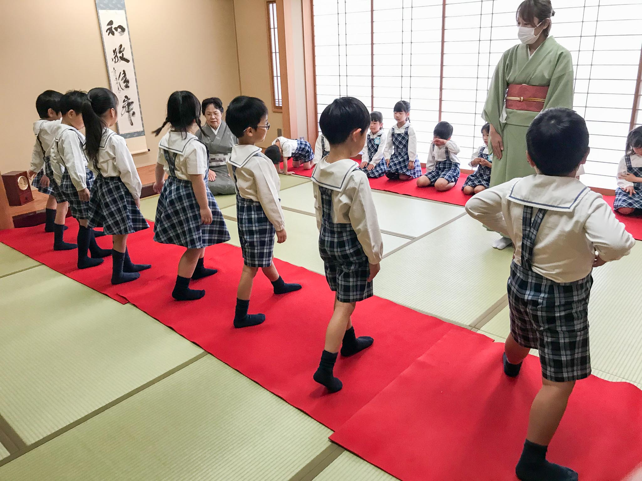 4月20日(月)に、年長組の子どもたちが、今年度初めてとなる礼法の時間を過ごしました。