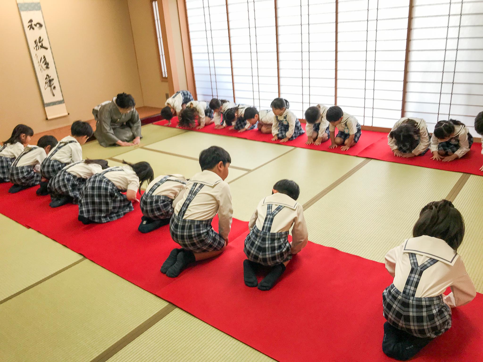 子どもたちは講師先生のお話に耳を傾け、教えていただいたとおりにやってみようとするのですが、どうしても動きがぎこちなくなってしまいました。ですが今回は、全てが初めての体験です。うまくできて先生に褒めてもらうと、嬉しそうな表情を浮かべる子どもたち。回数を重ねるごとに、自然な所作が見についていくことでしょう。