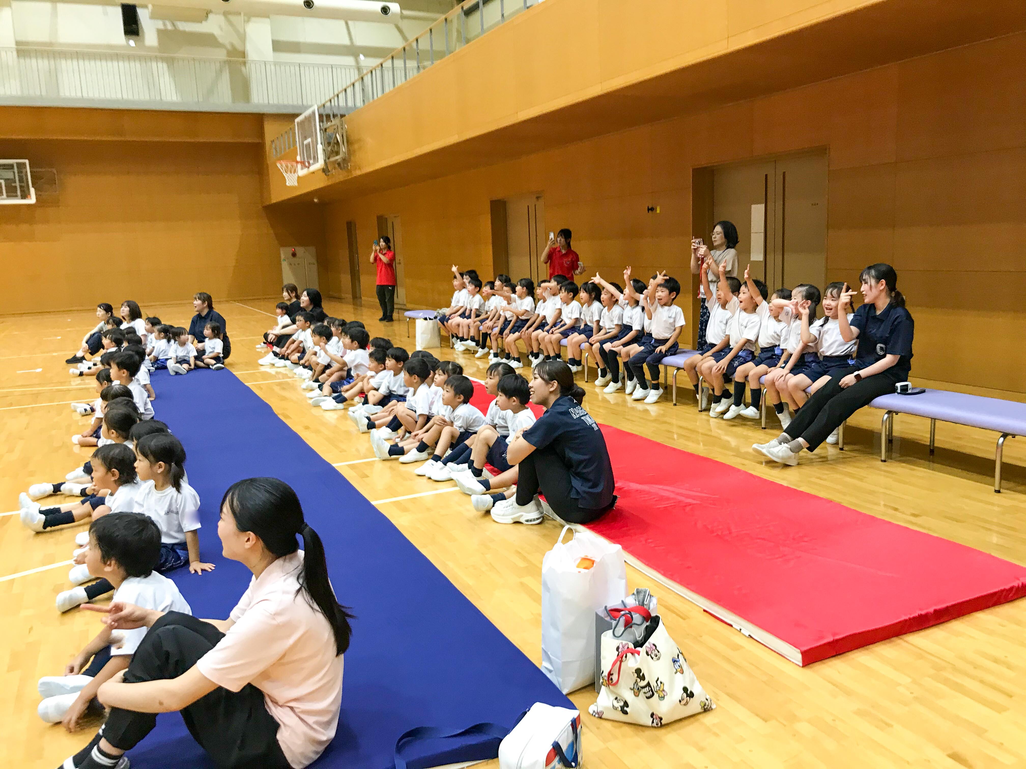 子どもたちがよく知っている、ディズニー映画やアニメの曲などが次々と登場。初めて目にする楽器の生の音と、すばらしいアンサンブル。そしてかっこよく、時にはコミカルなダンスパフォーマンスに、子どもたちはぐいぐい引き込まれていきました。最後に演奏された「にじ」という曲では、年長組の子どもたちが手話を交えて一緒に歌いました。本当にあっという間の楽しい30分間でした。