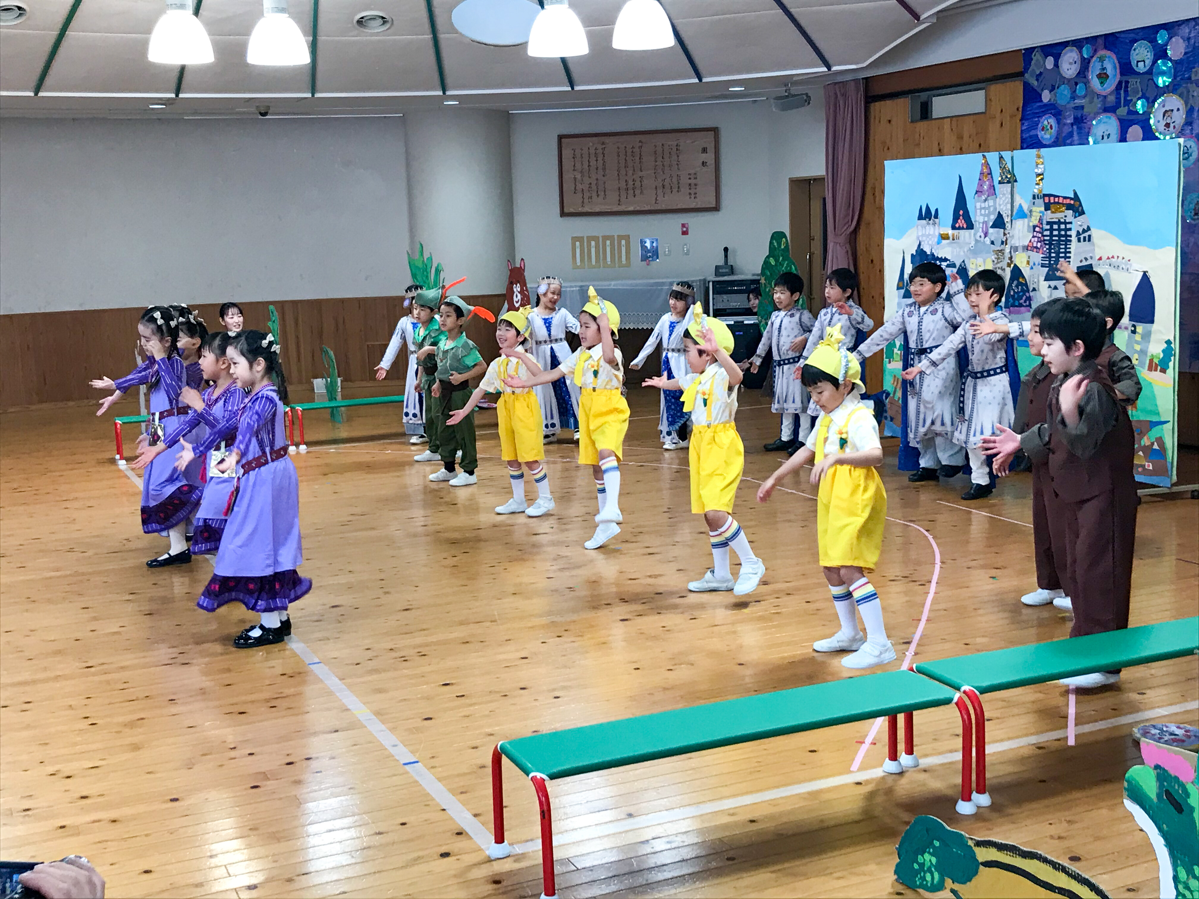 2月21日(土)は今年度最後の発表の機会となる「きらきら発表会」。学級ごとに、遊戯室で表現活動を発表しました。